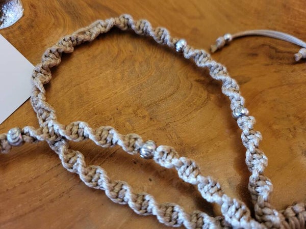 Handgemaakte edelsteen ketting van zandkleur (kaki) waxkoord verwerkt zilver-RVS kralen aan een Chalcedoon Amulet (doorboord). De Chalcedoon zit vast en verwerkt aan de ketting. Je kunt deze dus niet wisselen. De ketting heeft een schuifknoop voor het verlengen of inkorten naar wens. Lengte ketting: Anahata, hart-chakra (ca. 50-75 cm.). Steen: 2.9 cm.